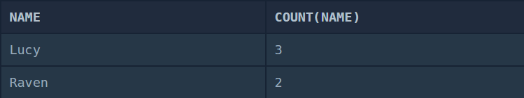 이때 이름이 NULL인 경우는 집계하지 않으며 중복되는 이름은 하나로 칩니다.