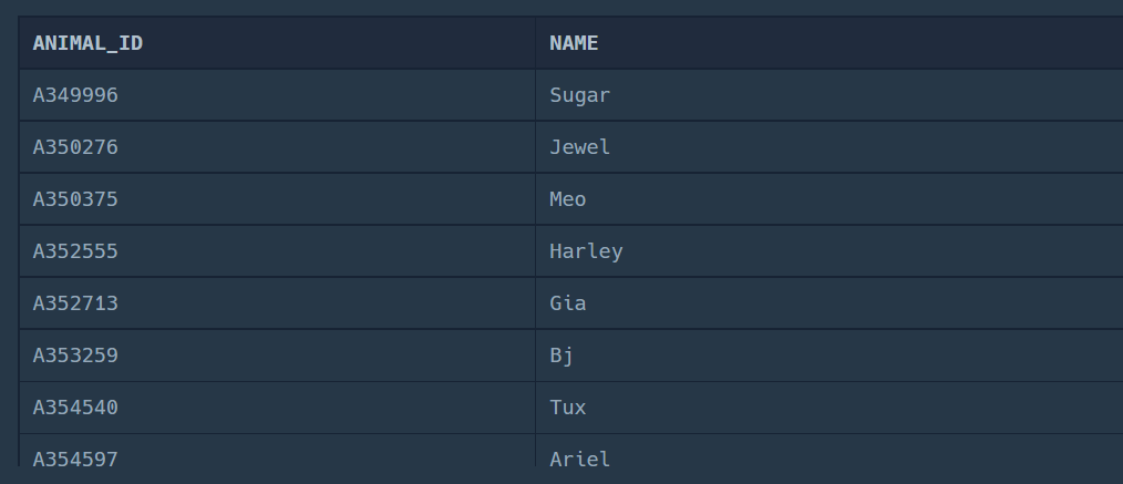 이 문제부터는 ANIMAL_OUTS 테이블도 사용합니다.