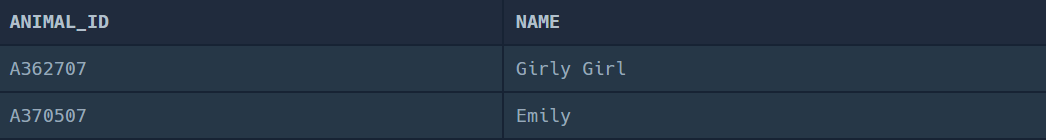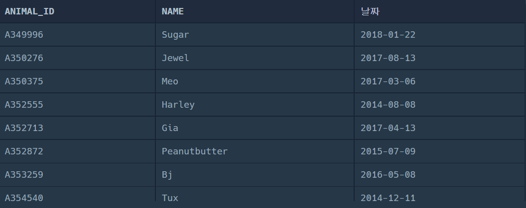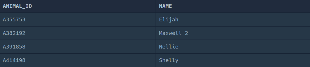 SELECT ANIMAL_INS.ANIMAL_ID, ANIMAL_INS.NAME