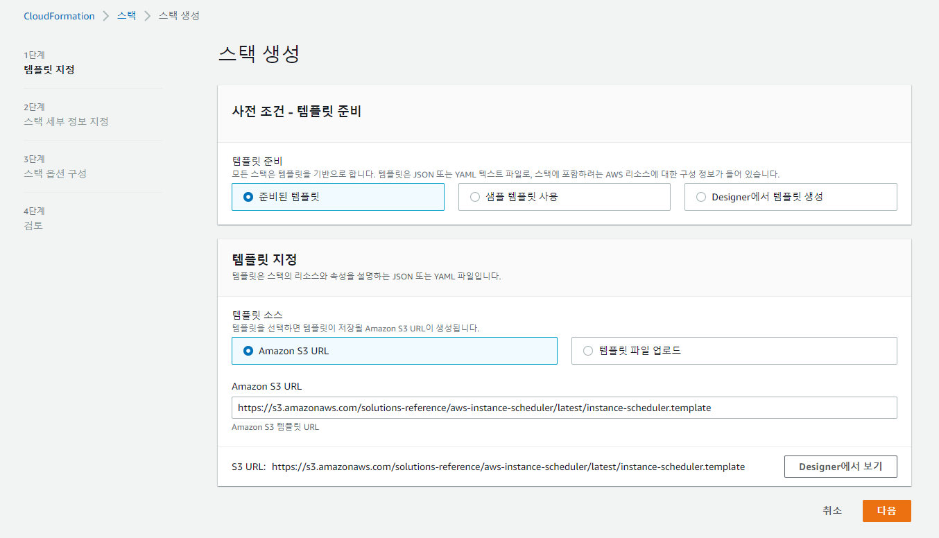 AWS에서 제공하는 기본 템플릿 링크입니다. 이를 입력해줍니다.