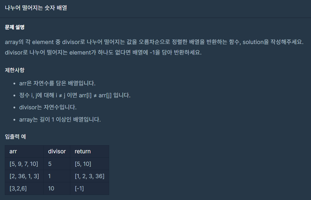 안녕하세요! 오늘은 나누어 떨어지는 숫자 배열 문제를 풀어보겠습니다.