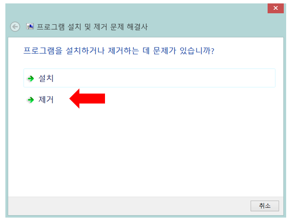 2. 제어판에서 삭제되지 않는 오류를 마이크로소프트의 프로그램으로 해결 가능합니다.