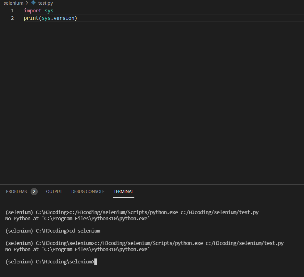 3) test.py 파일을 실행했을 때 No python at ~~라고 나오면 삭제 완료입니다.