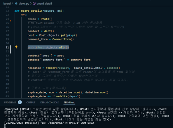 저 또한 Django ORM을 사용하고 있는데요. 다음 명령어를 통해 Post 모델의 객체를 모두 조회해보았습니다.